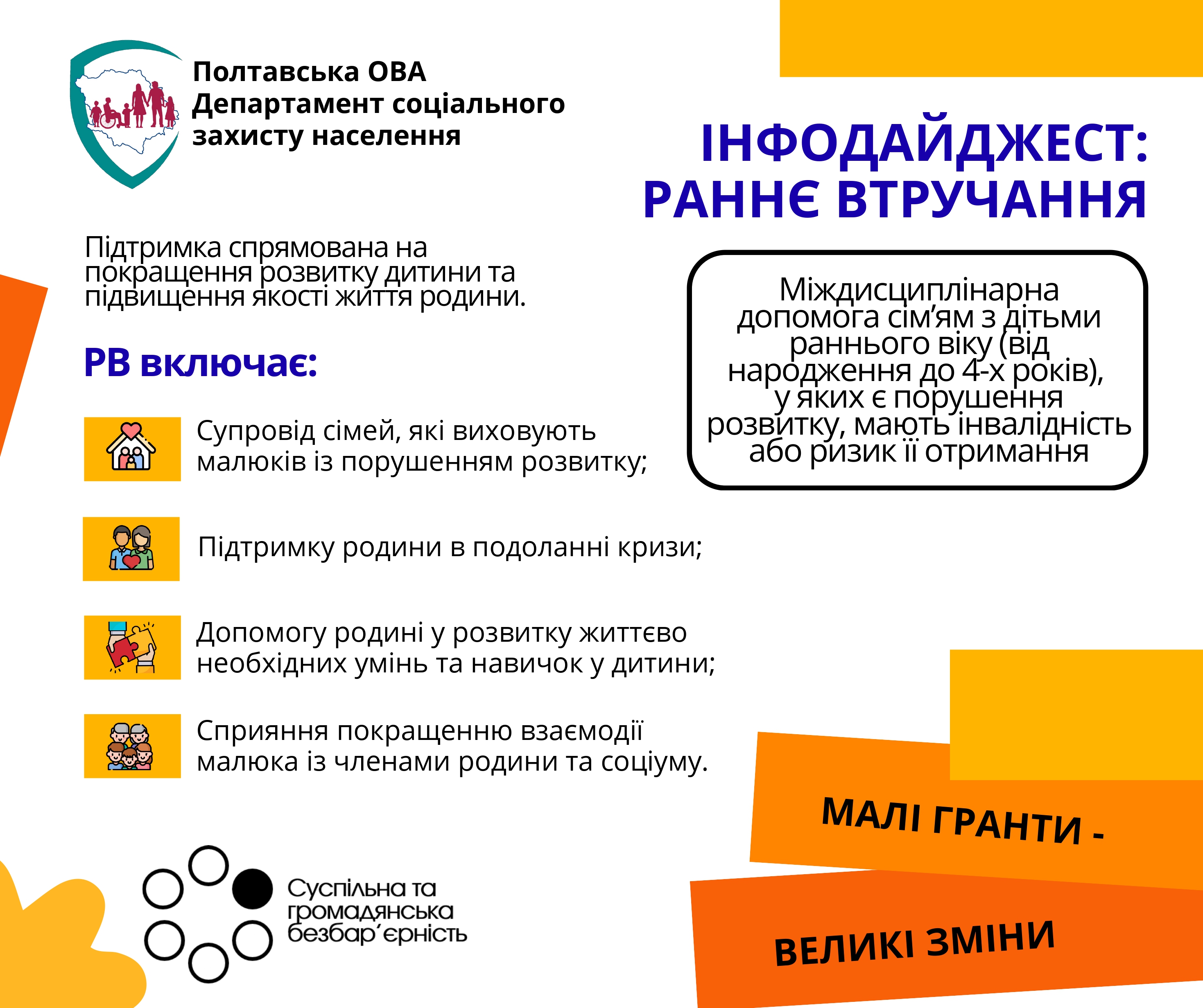 На виконання заходів Національної стратегії та з нагоди Всесвітнього дня дитини та Дня захисту дітей в Україні, яким визначено 20 листопада, в Полтавській області розпочато інформаційну кампанію «Раннє втручання – Полтавщина».