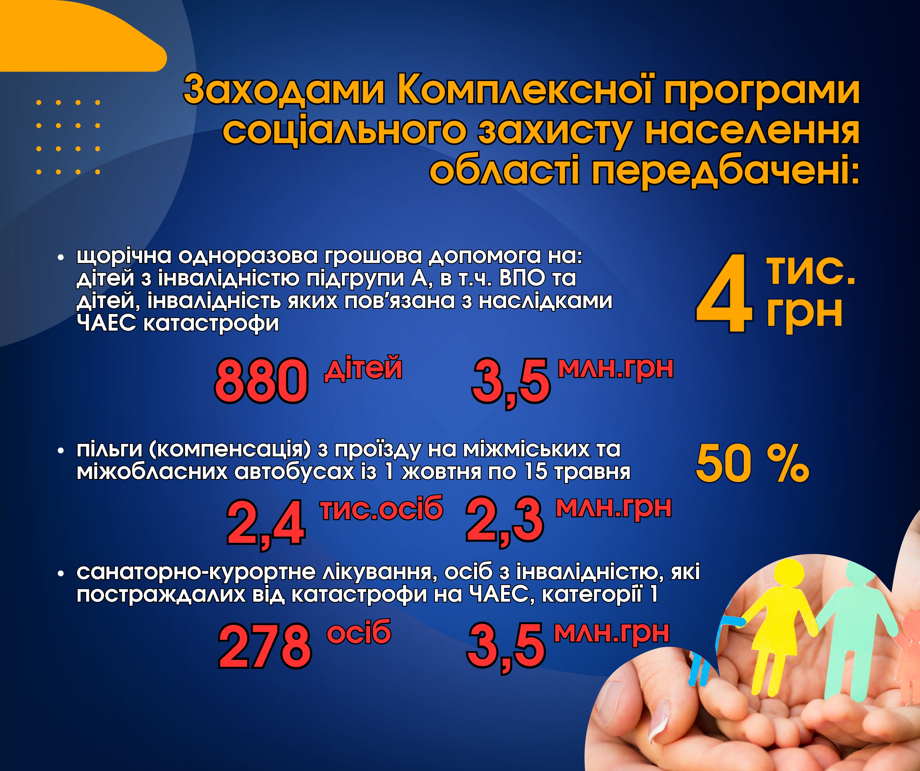 Водночас, враховуючи безумовну важливість забезпечення соціального захисту осіб, постраждалих внаслідок Чорнобильської катастрофи, у 2026 році в рамках обласної програми планується продовжити напрямки підтримки.
