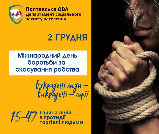 Полтавська область є учасником Програми з протидії торгівлі людьми Представництва Міжнародної організації з міграції в Україні «STOP Trafficking», яка реалізується ГС «Коаліція НУО з протидії торгівлі людьми» та координується є CO «Light of Hope»/БО «Світло надії».