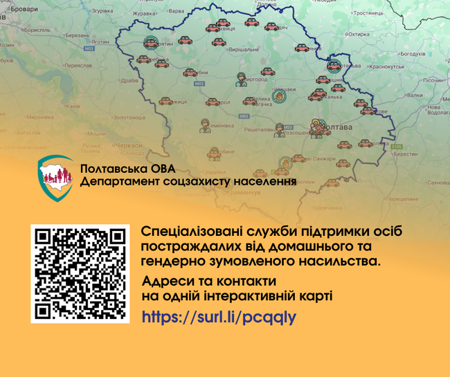 Нагадуємо, що всі надавачі соціальних послуг області, які є суб’єктами з питань протидії та підтримки осіб, постраждалих від домашнього насильства нанесені на інтерактивну карту, які доступна за посиланням https://surl.li/svspdr