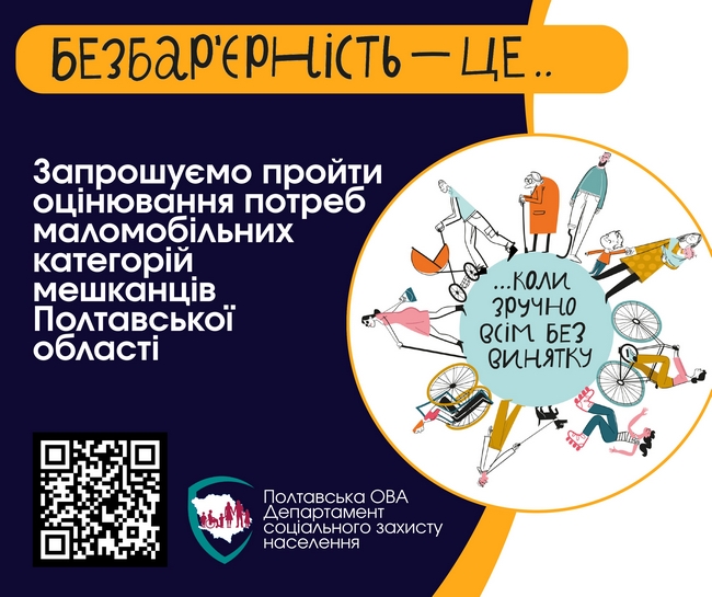 На виконання Плану заходів на 2025 рік з реалізації Національної стратегії із створення безбар’єрного простору в Україні на період до 2030 року, Департаментом соціального захисту населення проводиться анкетування мешканців області, з числа маломобільних категорій населення щодо визначення їх потреб та бар'єрних аспектів при взаємодії з громадою, соціальною інфраструктурою тощо.