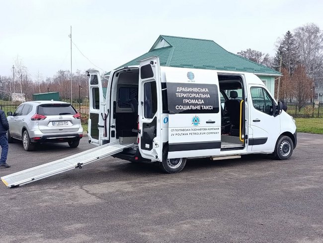 Завдяки співпраці з СП «Полтавська газонафтова компанія» та ТОВ «ЮА ГЕО» Центр отримав спеціалізований автомобіль, обладнаний платформою для перевезення осіб з інвалідністю для забезпечення транспортних послуг «соціальне таксі». Відтепер на «карту» інклюзивних соціальних авто додану і Драбинівську громаду. Загалом послуга соціального таксі доступна в 36 громадах області.