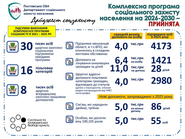 Відтак, на сьогодні в Полтавській області майже 17 тисяч осіб перебувають на обліку, як постраждалі від наслідків Чорнобильської катастрофи, з них – 7,7 тисяч осіб мають статус ліквідаторів. Системність підтримки зазначеної пільгової категорії підтверджується заходами Комплексної програми соціального захисту населення, в рамках якої в 2025 році на підтримку ЧАЕС спрямовано понад 16,6 млн.грн.