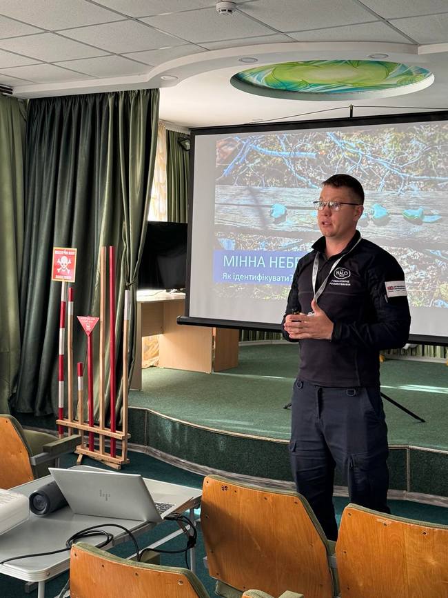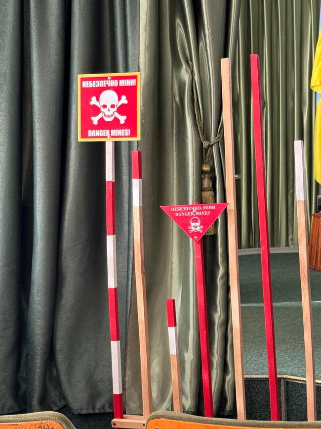 Працівники дитячого будинку-інтернату разом з фахівцями HALO trust розібрали типи мін, вивчили правила поведінки, знаки попередження (таблички, стрічки) та порядок дій при виявленні підозрілого або схожі на боєприпаси предмети.