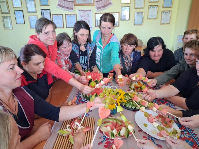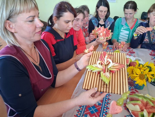 У Новосанжарському дитячому будинку-інтернаті останній вересневий тиждень минув по-справжньому тепло й натхненно, наповнений яскравими подіями, творчістю і щирими усмішками. Дівчата стали учасницями одразу кількох захопливих активностей: майстер-класу з малювання хною, створення осінньої фотозони з креативно розмальованими кабаками, веселого квесту, смачного мохіто та ще одного незвичайного заняття — створення декору з фруктів, які для них підготувала та провела інструктор з праці Вікторія Пасько.